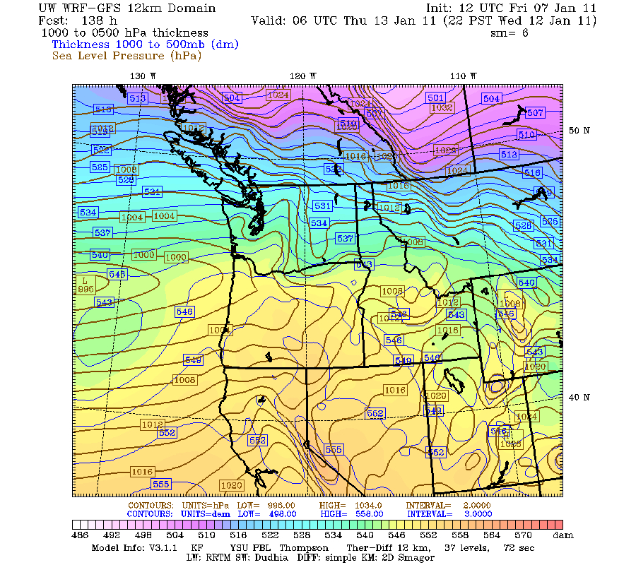 This is a map of predicted 24 hour snow accumulations from 4 P.M. Wednesday to 4 P.M. Thursday. At face value, this would mean a FOOT of snow in Seattle. To top it off, more snow comes pouring in later on this model, which would bring the storm total to over two feet in our area before it is all said and done.