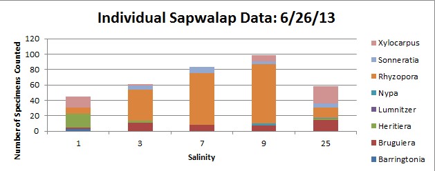 I know I didn’t do a very sizable blog post yesterday… this was because I was working on a field report for the data we collected in the mangrove swamps. I told you I’d post some of the data and an analysis once I analyzed it, so that’s what I’ll do. Here’s a summarization of my report.