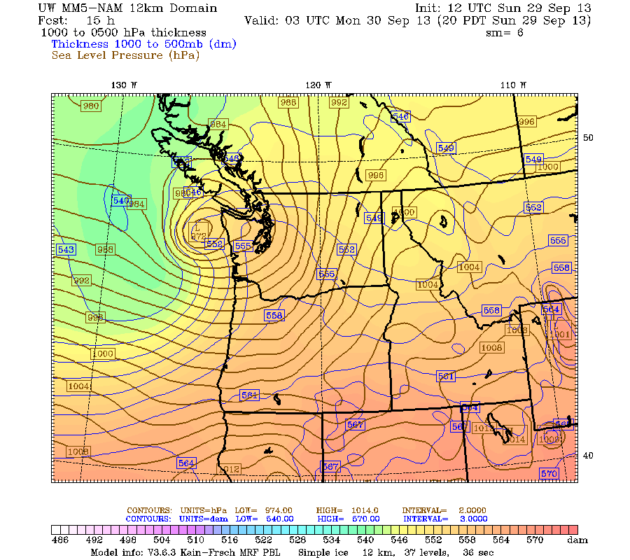 The NAM paints a much more dire scenario for Western Washington, particularly Puget Sound. An intense low moves to Cape Flattery and deepens to an astounding 966 millibars before steamrolling through southern BC. This would give damaging winds to all of Western Washington.