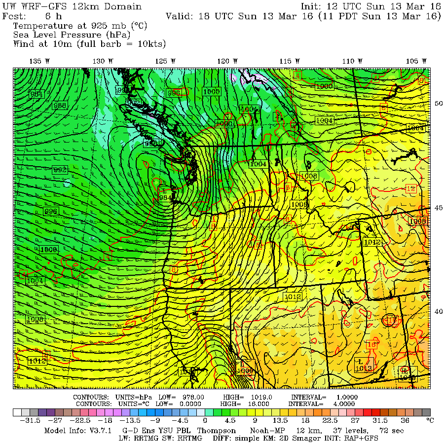 | Valid 11:00 am PDT, Sun 13 Mar 2016 – 6hr Fcst Credit: University of Washington |