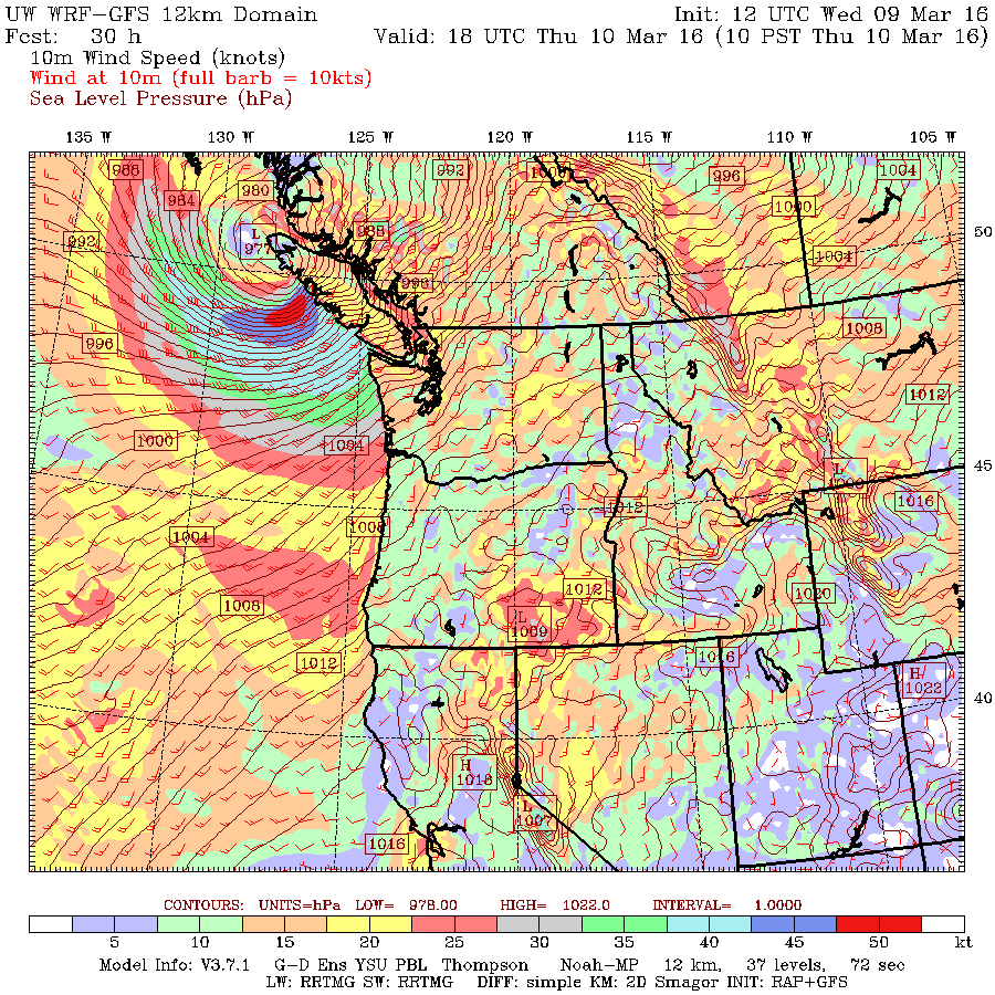 | Valid 10:00 am PST, Thu 10 Mar 2016 – 30hr Fcst |