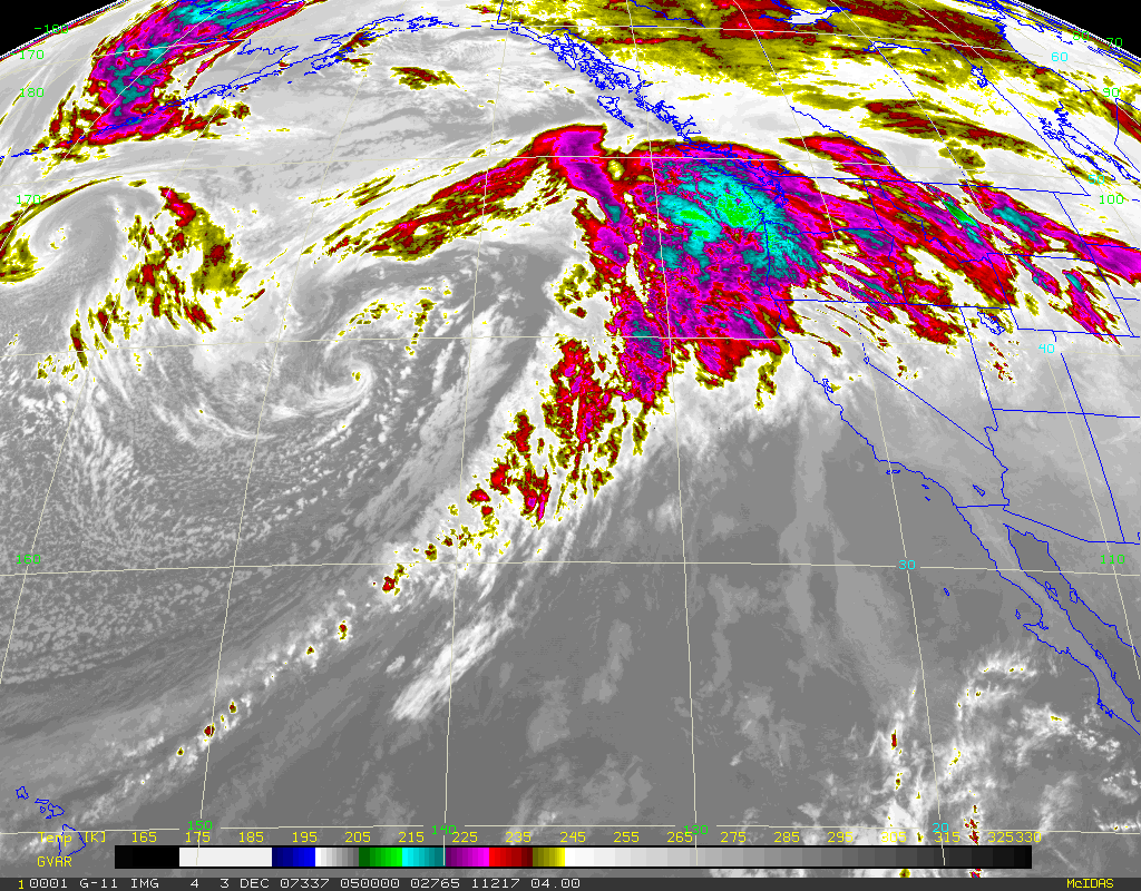| The Great Coastal Gale, the “mother of all Southeast Suckers” – Wolf Read Image taken 09:00 pm PST, Sun 02 Dec 2007 Credit: University of Washington Online Weather Data Archive |