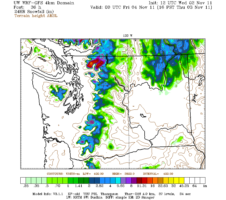 Valid 05:00 pm PDT Thu, 03 Nov 2011 – 36hr Fcst – UW 4km 12z WRF-GFS 24-hour snowfall