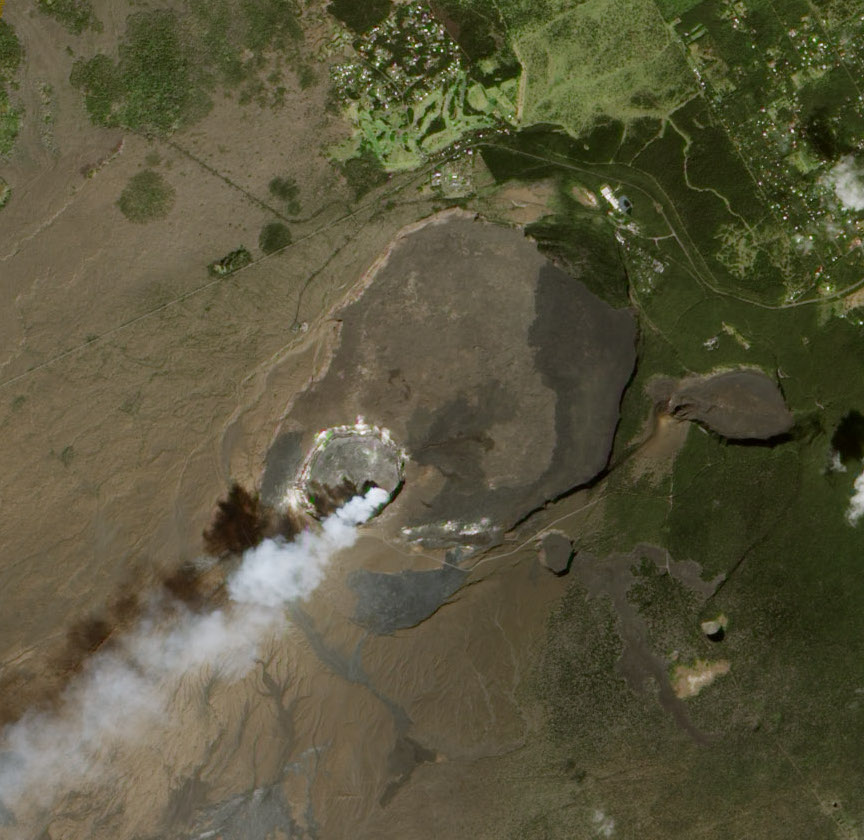 See that miniature crater from which steam is erupting within the larger Kilauea caldera? This is known as the Halema’uma’u Crater and is the current ‘eruptive center within the eruptive center.’ It has constantly been erupting a cloud of steam, sulfur dioxide, and other volcanic gasses since at least 1983.