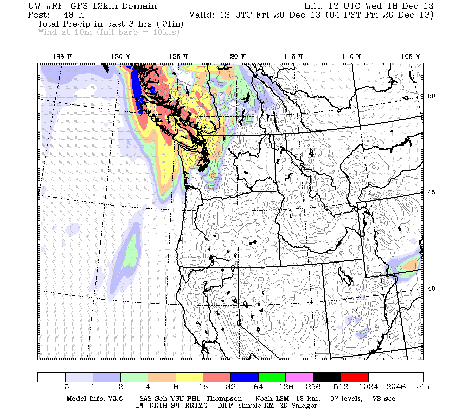 | Valid 04:00 am PST, Fri 20 Dec 2013 – 48hr Fcst: http://www.atmos.washington.edu/~ovens/wxloop.cgi?mm5d2_pcp3+//84/3 |