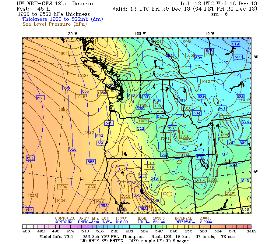 | Valid 04:00 am PST, Fri 20 Dec 2013 – 48hr Fcst: http://www.atmos.washington.edu/~ovens/wxloop.cgi?mm5d2_thick+//84/3 |