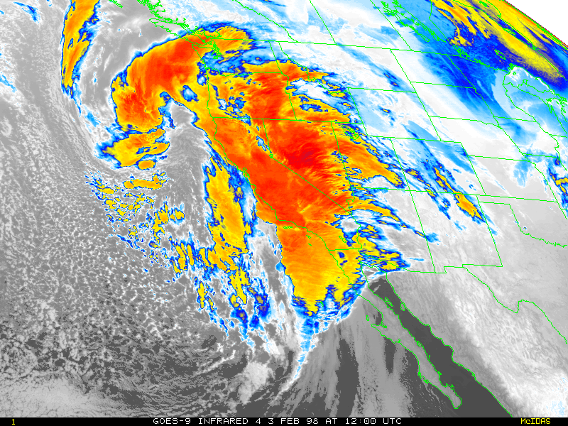 | A powerful, early February 1998 storm that caused flooding throughout California. Credit: NOAA |