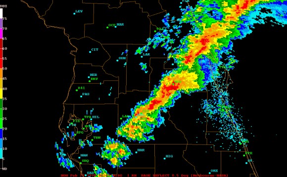 | A line of tornadic supercells rolling through Florida at 1:55 am. Credit: NOAA |