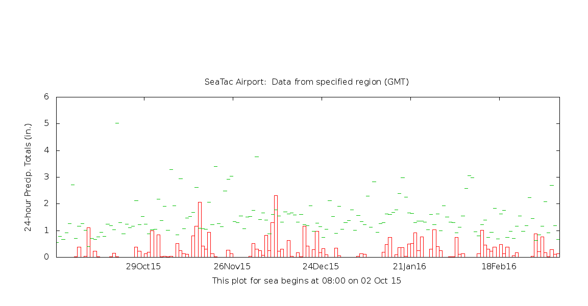 My personal definition of meteorological winter is from Veteran’s Day to Valentine’s Day, because it’s nearly impossible to get significant lowland snowstorms here outside of those dates. Compiling statistics for my own “meteorological winter” definition would be extremely time-consuming and not very productive, but I’m willing to bet that 2015-2016 was also the wettest year for the Veteran’s Day to Valentine’s Day time frame.